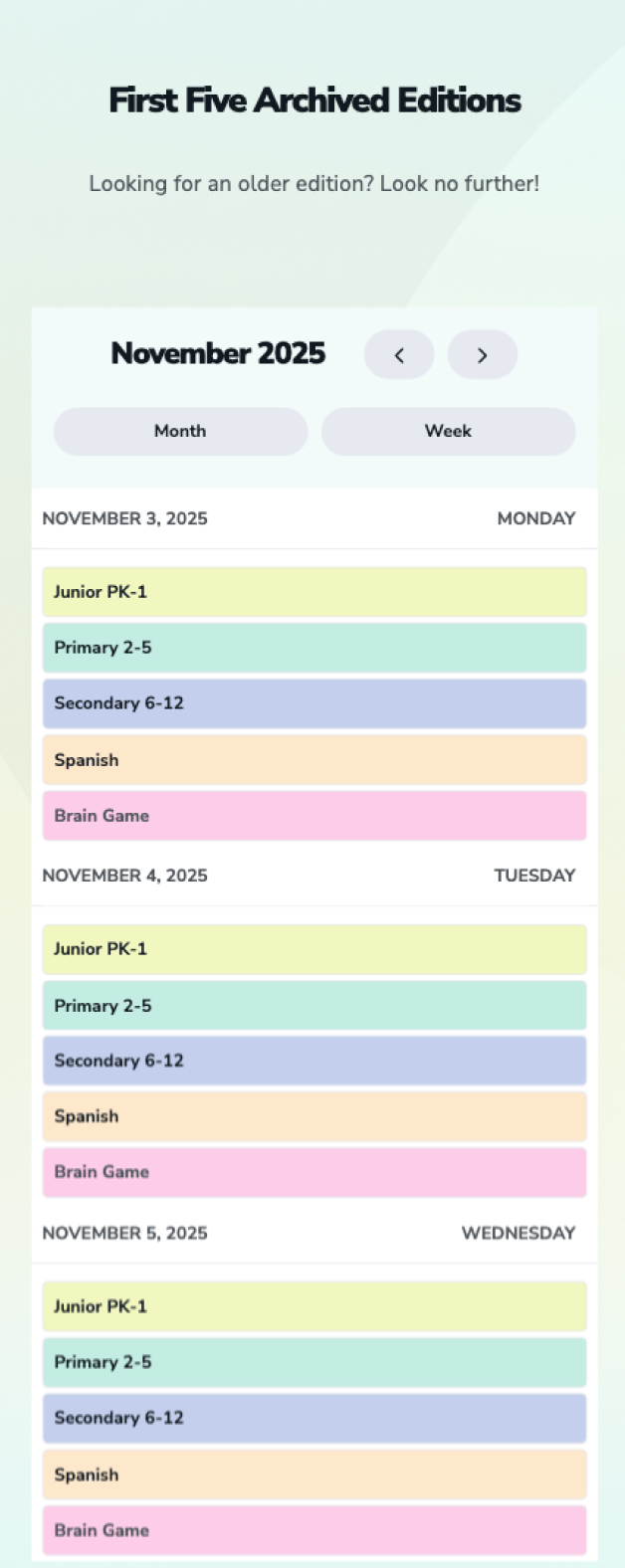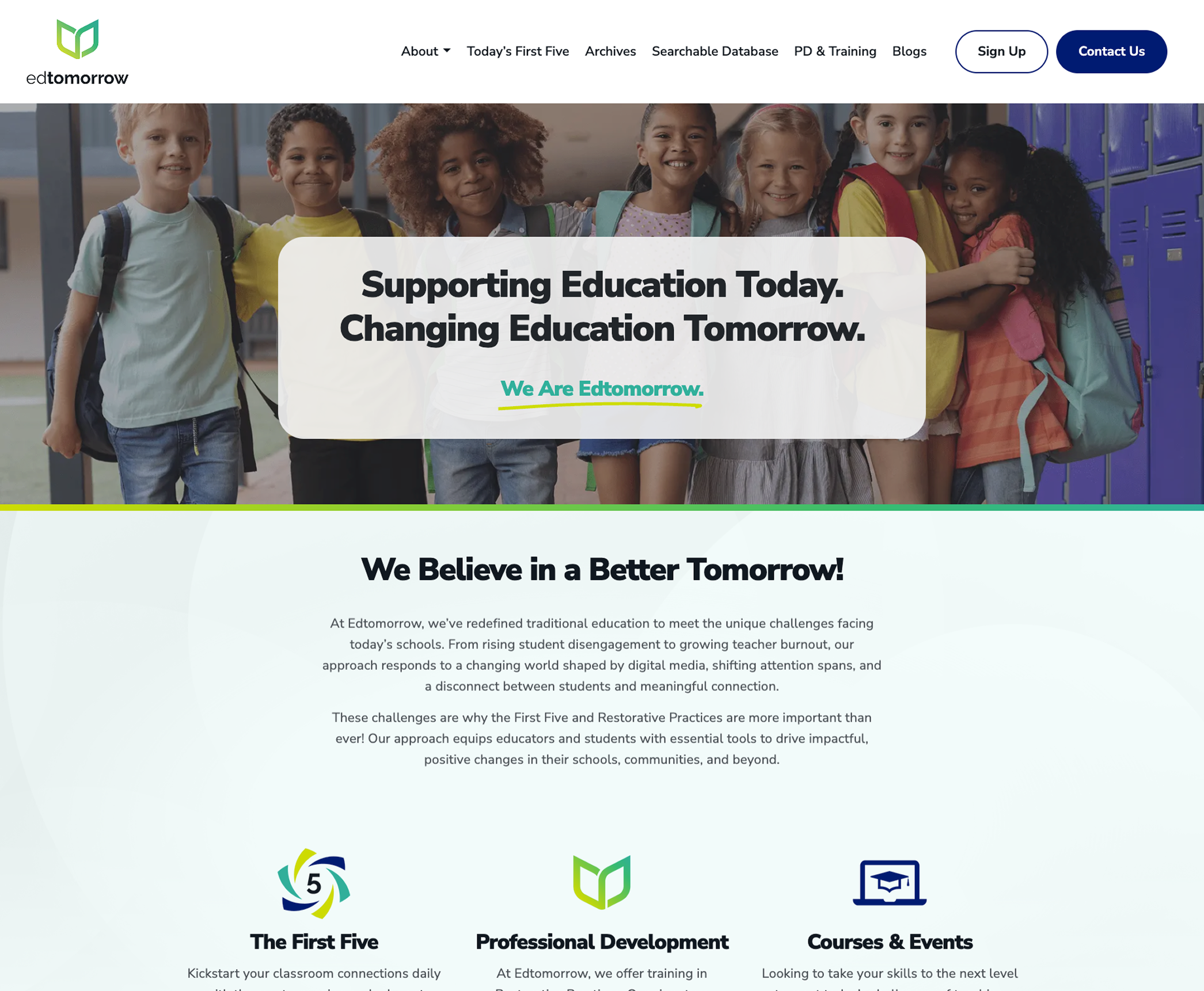 We partnered with Edtomorrow, an education resource provider, to redesign their website with a modern, inviting look that aligned with a previous resource database we had built. The site was developed to host and archive daily newsletters, giving teachers an accessible platform to explore past and future resources in a user-friendly environment.